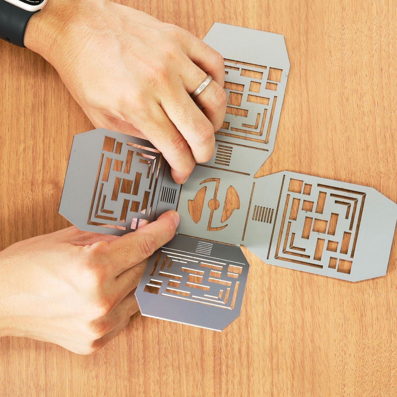 製品サイズ:組立前 約210mm×210mm×0.8mm/組立後 約70mm×70mm×100mm