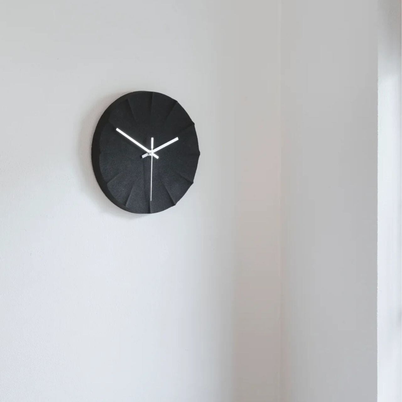 S-Clock φ300は、黒砂の静けさとアルミの針が生み出す、凛とした存在感をもっています。