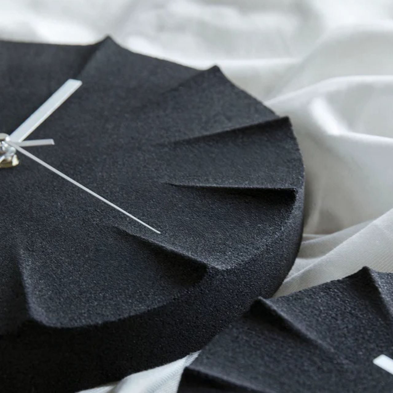 アルミニウムの針が、黒の静寂に浮かぶデザイン