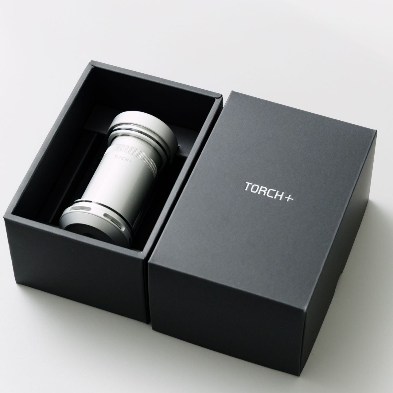 TORCH+は、アルミ切削によるミニマルな造形と、落ち着いたモノトーンの佇まいが美しいオイルトーチです。